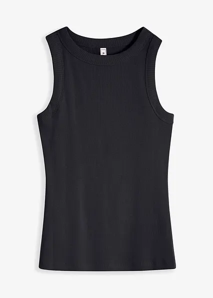 Ripp-Top aus reiner Bio-Baumwolle in schwarz von vorne - bonprix