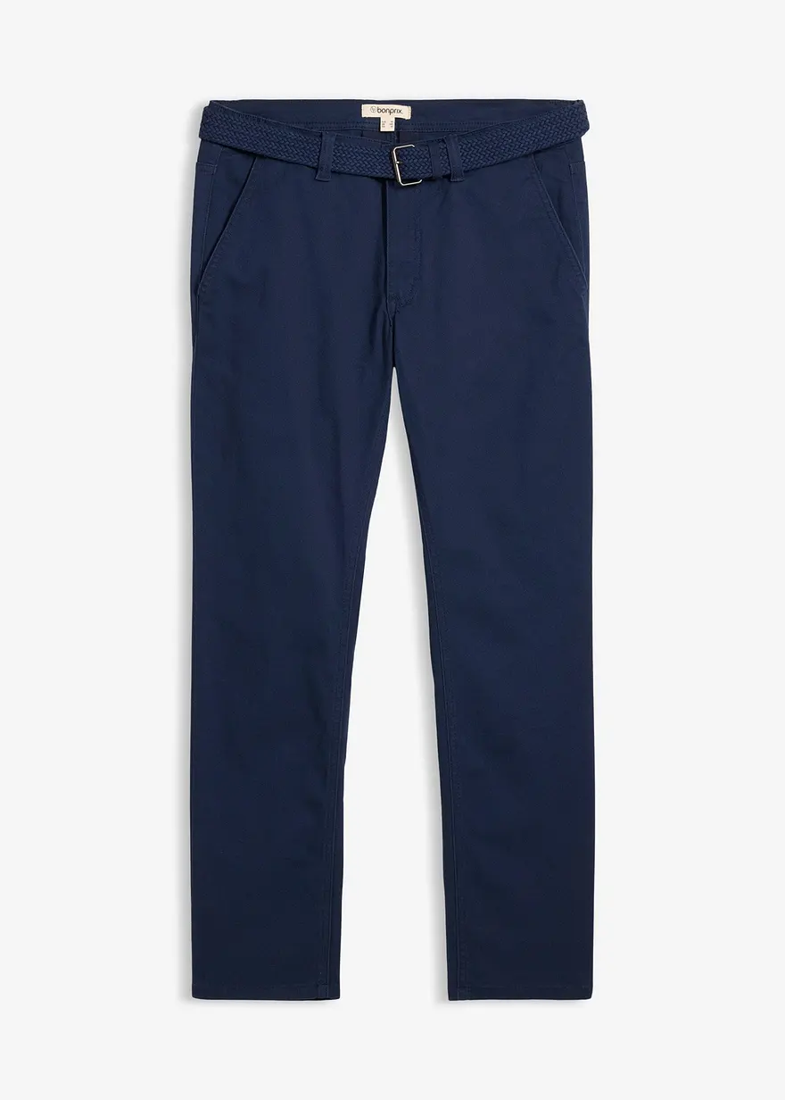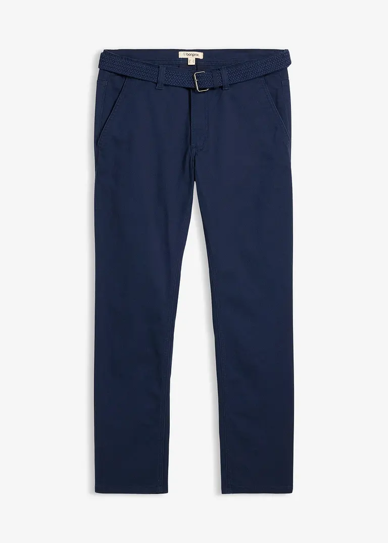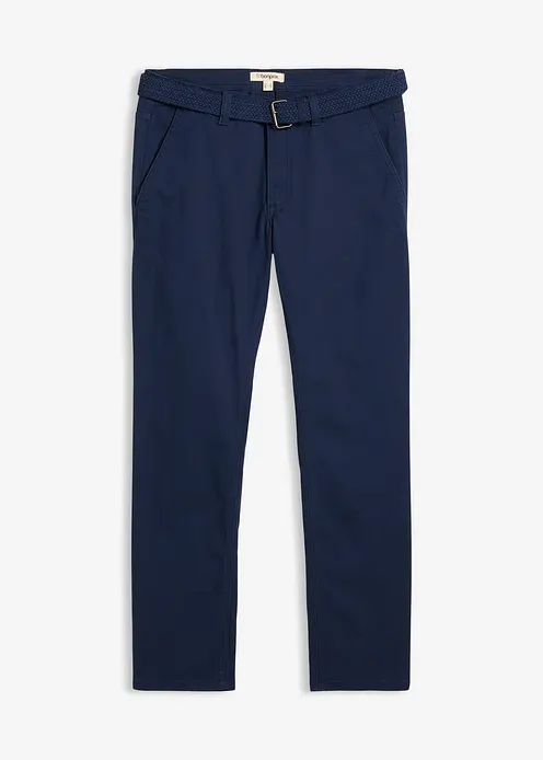 Regular Fit Stretch-Chinohose mit Dehnbund und Gürtel, Straight