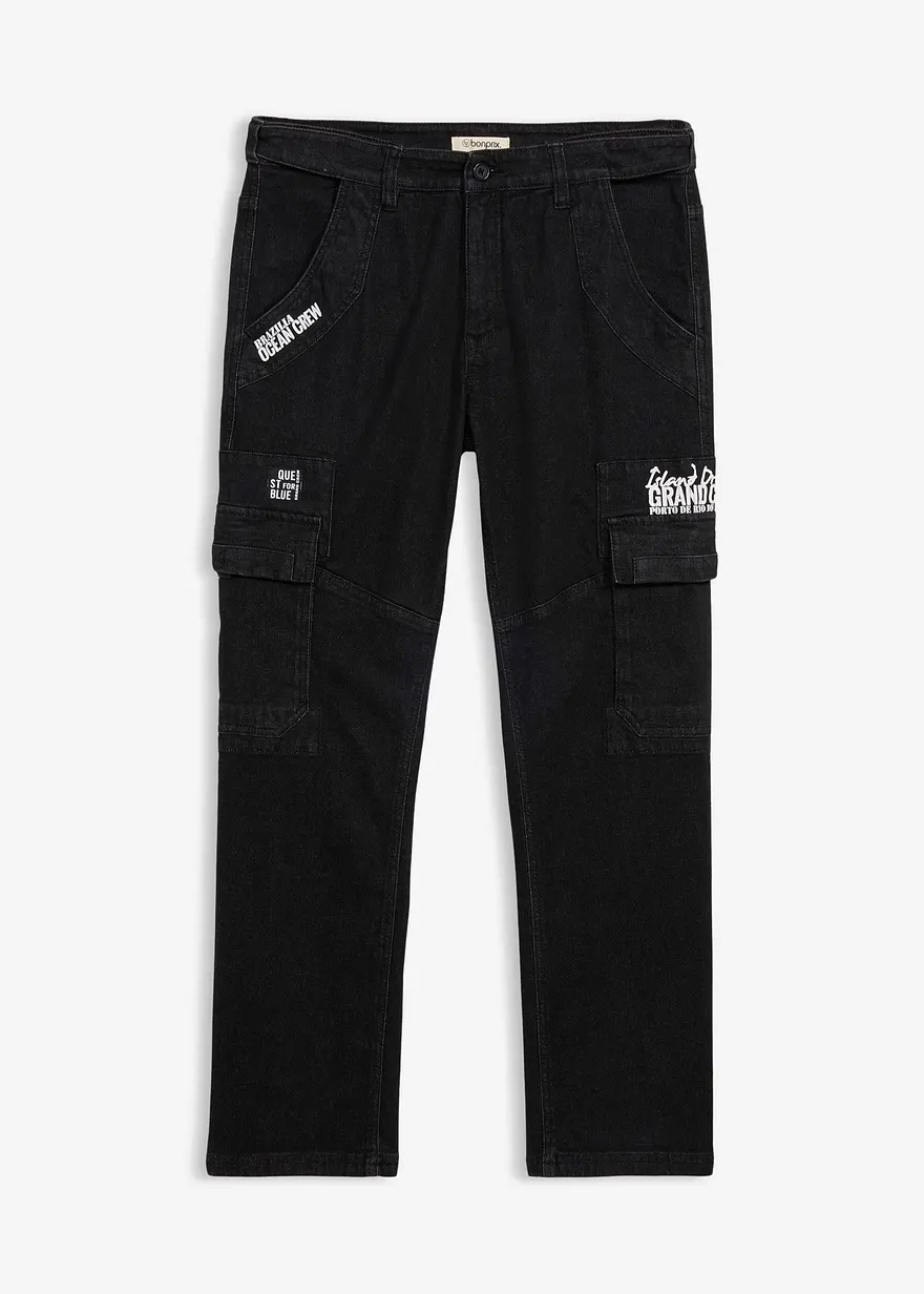 Relaxed Fit Cargo-Stretch-Jeans mit Bequembund, Straight