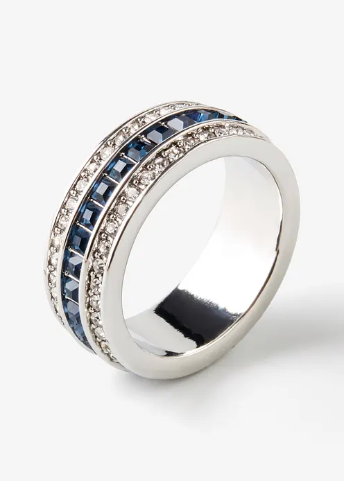 Ring veredelt mit Glaskristallsteinen in silber von vorne - bonprix