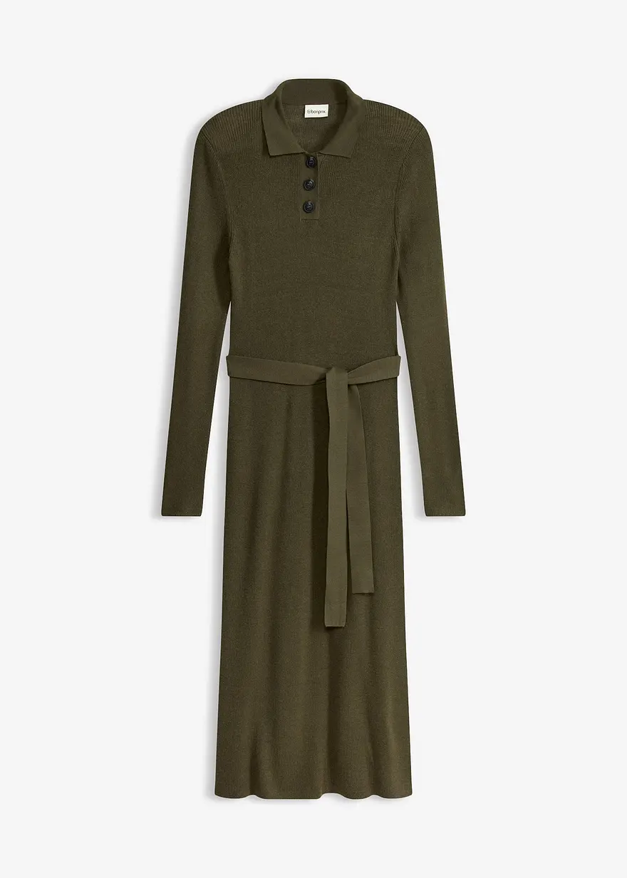 Kuscheliges Kleid mit Gürtel und Kragen