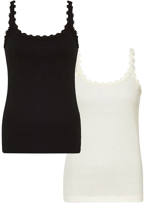 Süßes Top mit Spitzenborte im Doppelpack