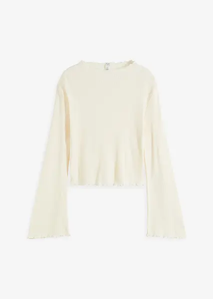 Feines Rippshirt aus reiner Baumwolle mit Trompetenärmeln