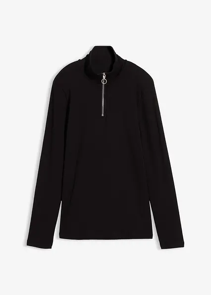 Figurbetontes Rippshirt aus softem Viskose-Mix mit Reißverschluss