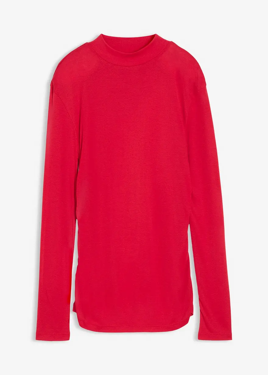 Rippshirt mit hohem Kragen und seitlichen Raffungen an der Taille