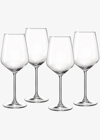 Mit ihrer wohlproportionierten Formensprache, die eine angenehm moderne Ästhetik ausstrahlt, glänzen die eleganten Rotweinkelche zu jedem Anlass. Während das Getränk durch den feinen, luziden Glaskörper hindurch sinnlich im Licht funkelt, wird es durch dessen eckig anmutende doppelkonische Silhouette subtil in Szene gesetzt. Kurzum: Es macht einfach Freude, aus den formschönen Gläsern zu trinken - egal, ob bei großen Feierlichkeiten oder in kleiner Runde! Bestehend aus: 4 Rotweingläsern (530 ml).