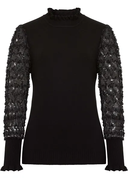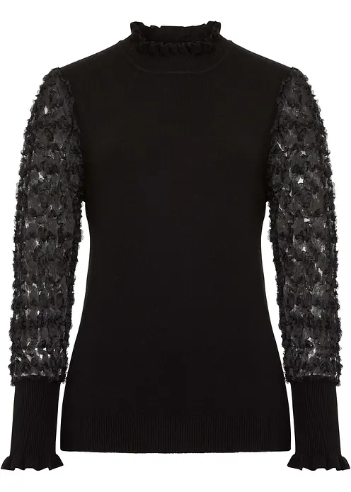 Rollkragenpullover mit dekorativen Chiffonärmeln
