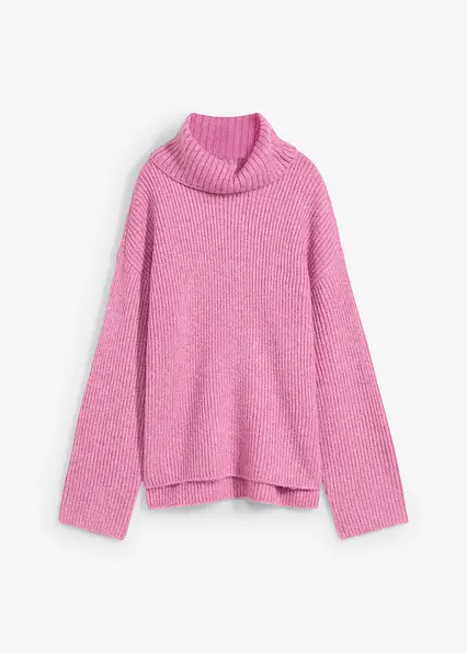 Strickpullover mit weitem Rollkragen und Seitenschlitzen