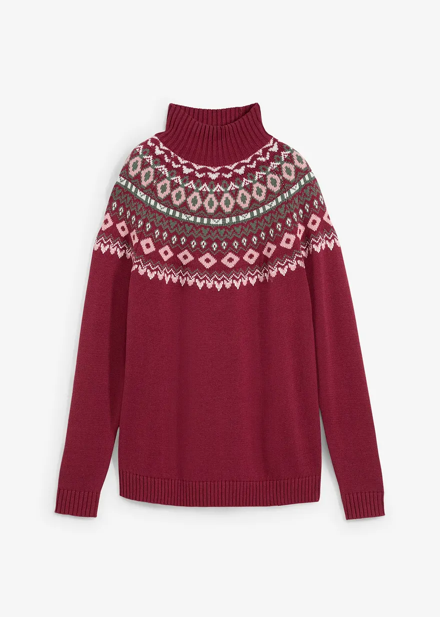 Kuscheliger Strickpullover mit Norwegermuster und Schalkragen