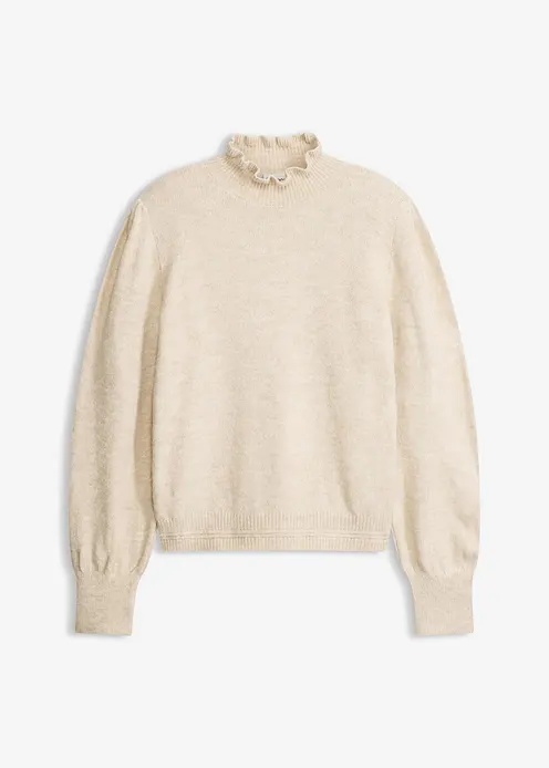 femininer Pullover mit Wellenkante am Kragen und am Ärmelsaum