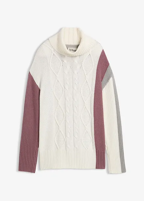 Modischer Zopfstrick-Pullover mit Rollkragen