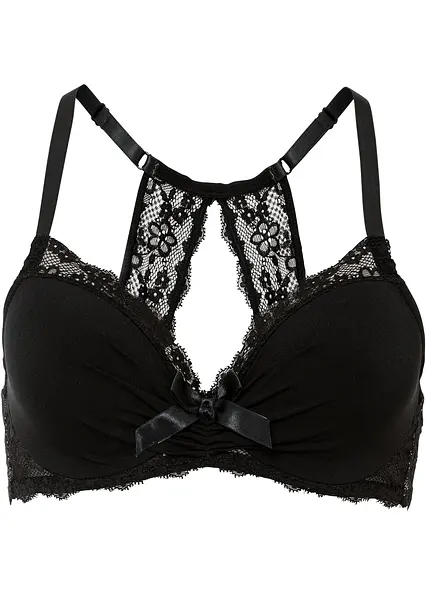 Schalen-BH mit Racerback aus Spitze und Schleifendetail.