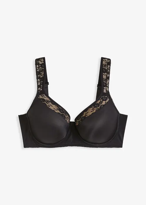 Der Spitzenbesatz am oberen Cuprand umrahmt sanft das Dekolleté. Leicht gepolsterte, nahtlos vorgeformte Cups und weiche Bügel schenken Halt und hohen Tragekomfort.