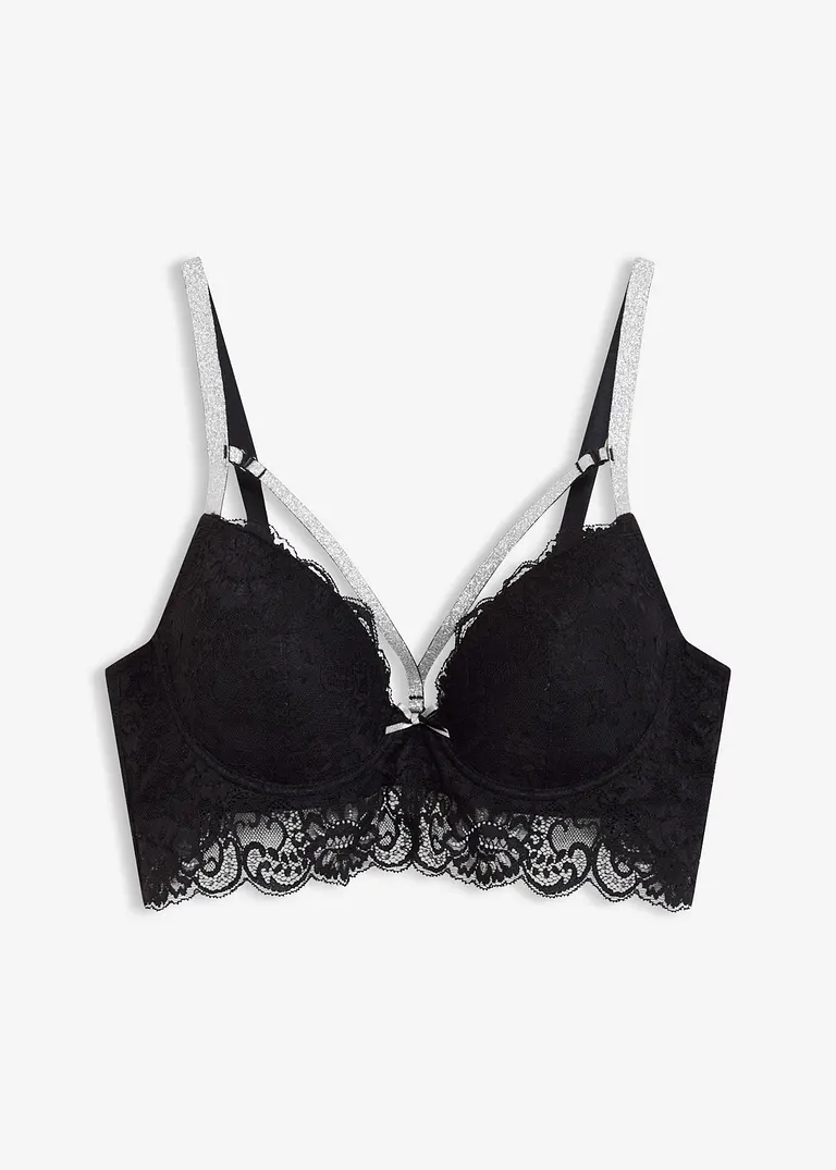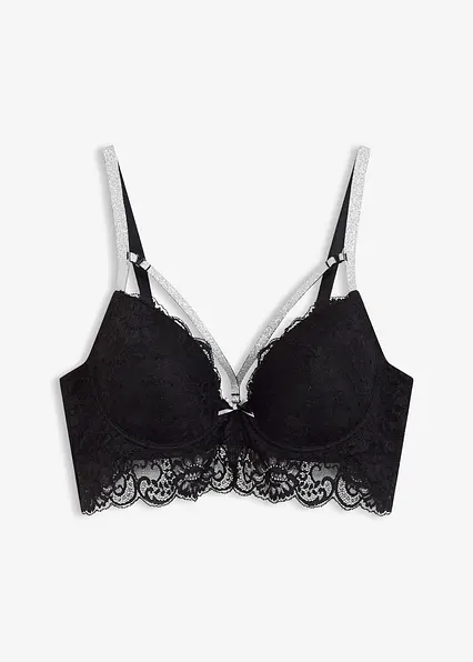 Schalen-BH mit abnehmbaren glitzernden Trägern in schwarz von vorne - bonprix