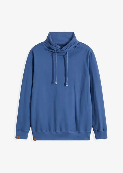 Schalkragen-Sweatshirt aus reiner Bio-Baumwolle in blau von vorne - bonprix