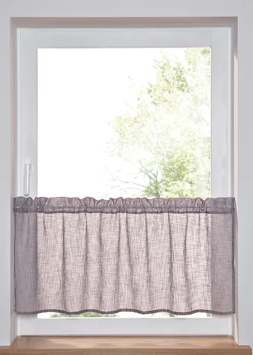 Elegante Scheibengardine in Leinen-Optik. Tunnelzug passend für Stangen mit bis zu 3cm Durchmesser.
