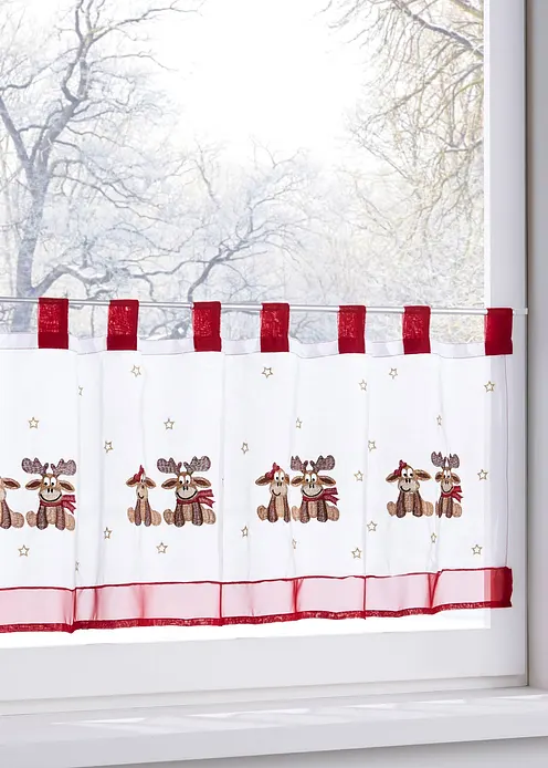 Weihnachtliche Scheibengardine mit bestickten Elchen