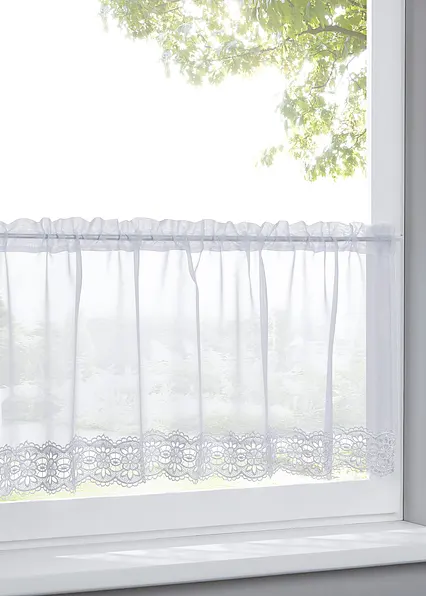 Küchengardine mit schmückender Spitzenkante
