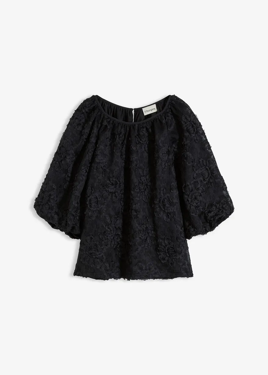 Schlupfbluse mit strukturiertem Blumen-Muster