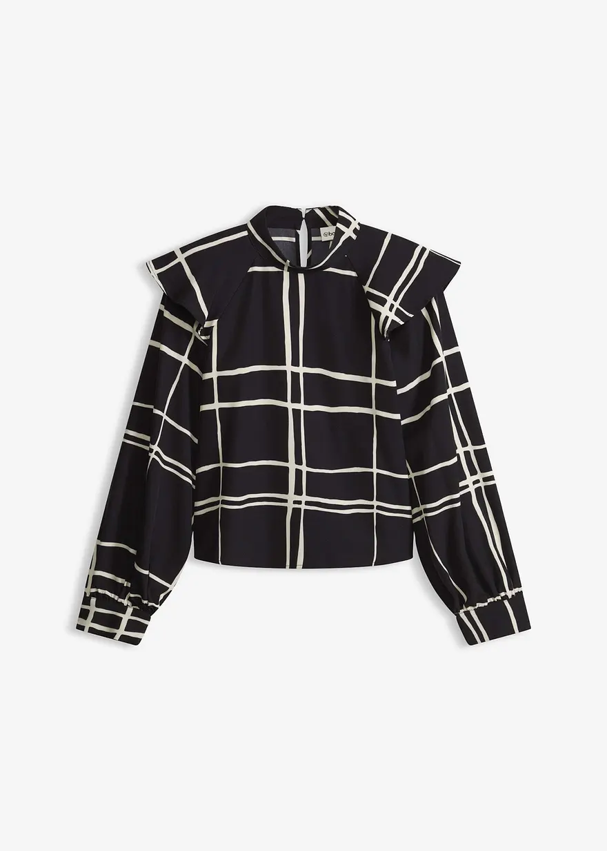 modisch bedruckte Bluse mit Stehkragen und Knopfverschluss hinten