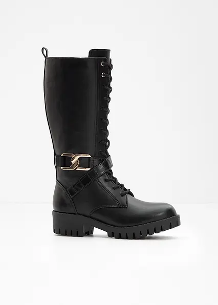 Schöner Schnür-Stiefel mit dekorativer Schnalle