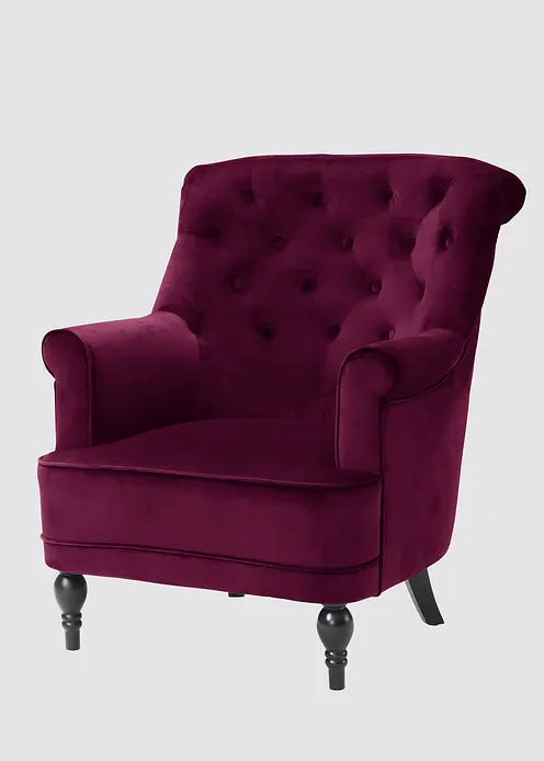 Dieser schöne Sessel ist ein wahrer Blickfang für jeden Wohnraum: Seine aufwendige Verarbeitung mit Polsterknöpfen und seine ansprechende Farbe machen ihn zu einem einzigartigen Möbelstück. Die Schaumstoffpolsterung und der Samtbezug sorgen für einen angenehmen Sitzkomfort. Der Polstersessel strahlt Gemütlichkeit aus und macht sich besonders gut im Wohn- oder Schlafzimmer. Die gedrechselten Vorderbeine des Sessels verleihen ihm einen barocken Touch. Dieser schöne Sessel ist ideal für alle, die ihre vier Wände mit viel Liebe einrichten.