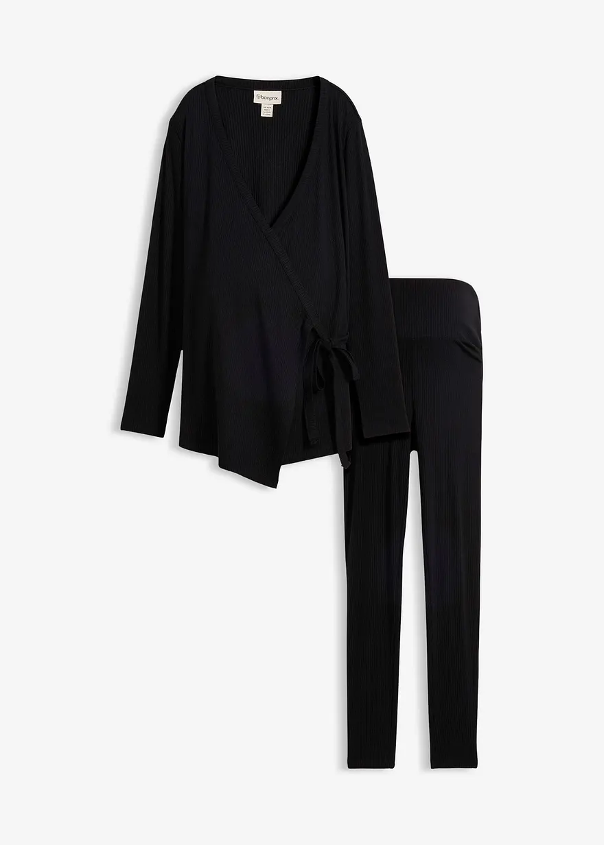 Set aus Umstands-Wickelshirt mit bequemer Leggings (2-tlg.Set)