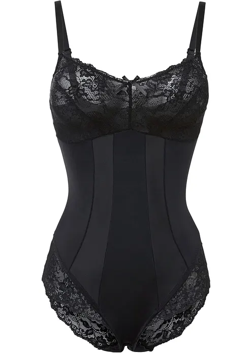 Der Shape Body formt mit mittlerer Formkraft den Oberkörper und zaubert eine tolle Figur. Durch einen Verschluss lässt sich der Body im Schritt öffnen und schließen. Der Shape Body wird von Spitze und Mesh geschmückt.