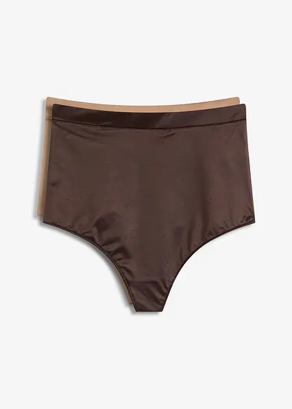 Shape String mit Glanzeffekt und leichter Formkraft (2er Pack) in braun von vorne - bonprix