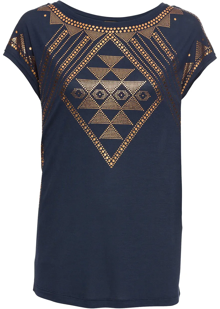 Das bedruckte Shirt ist ein stylishes Teil für angesagte Party-Outfits: Mit seinem großen Foliendruck auf der Vorderseite sorgt das Shirt für einen trendigen Look. Der lockere Schnitt mit Rundhals unterstreicht das lässige Design.Durch die Long-Form schmeichelt das Shirt der Figur. So lässt es sich super über einem Rock oder einer Leggings tragen. Dazu passen rockige Accessoires und Boots in Lederoptik.