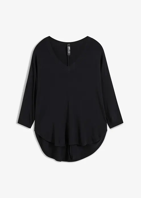 Shirt mit 3/4 Arm aus Viskose-Elasthan-Mix in schwarz von vorne - bonprix