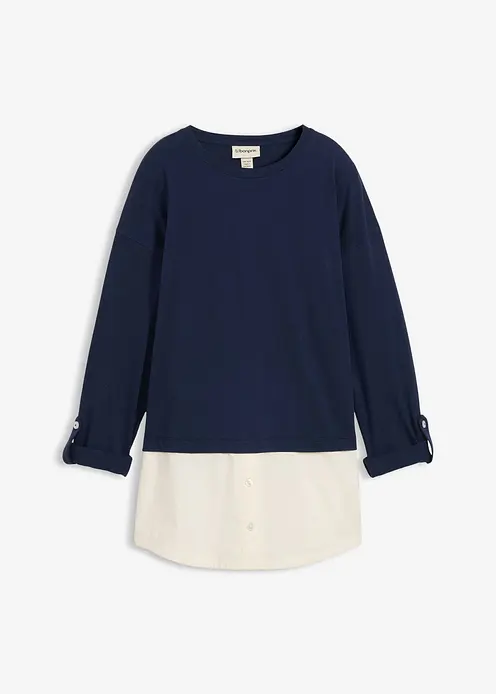 Shirt mit Bluseneinsatz aus reiner Bio-Baumwolle