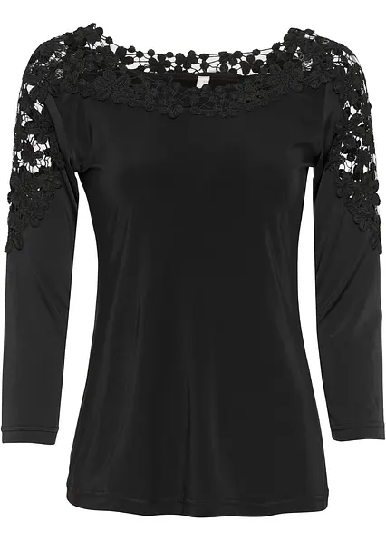 Shirt mit Häkeleinsatz und 3/4 Arm