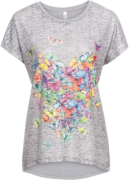 Shirt mit Schmetterlingsdruck in grau von vorne (im Anschnitt) - bonprix