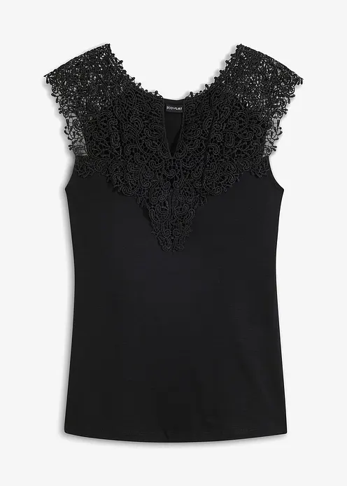 Ärmelloses Shirt mit filigraner Spitzenarbeit