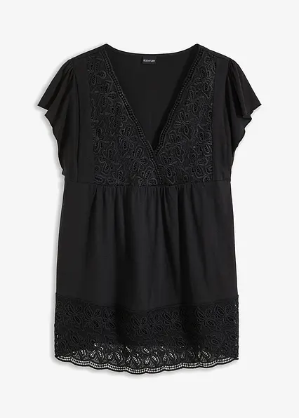 Shirt mit Spitzen-Ausschnitt und Spitze vorne