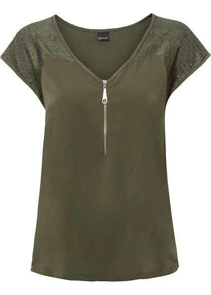 Originelles Shirt mit Reißverschluss und hübschen Spitzeneinsätzen