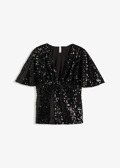 Modern und feminin: Pailletten-Shirt mit kurzen Kimono-Ärmeln