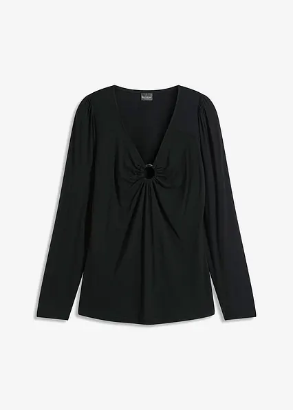 Stylisches Langarm-Shirt mit Ring-Detail am Ausschnitt