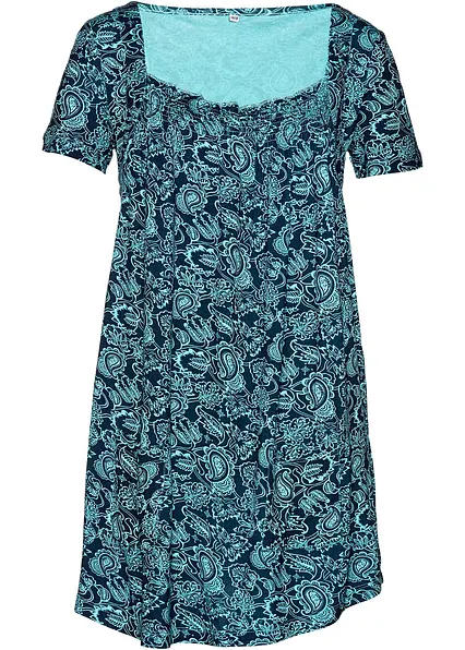 Halbarm-Shirt-Tunika mit gerafftem Ausschnitt aus fließender Viskose