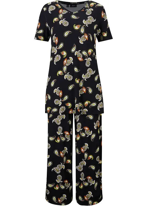 Shirt und Culotte aus fließendem Viskose-Mix, (2-tlg.Set) in schwarz im Look von vorne (Totalaufnahme) - bonprix
