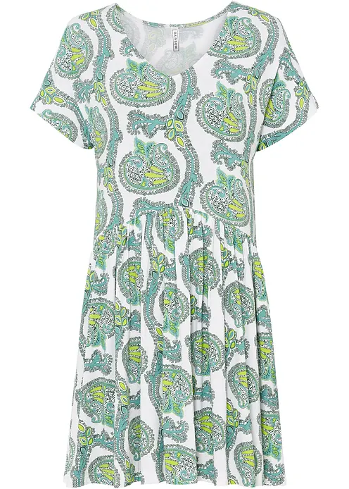 Shirtkleid aus fließendem Viskose-Elasthan-Mix in weiß von vorne (Totalaufnahme) - bonprix