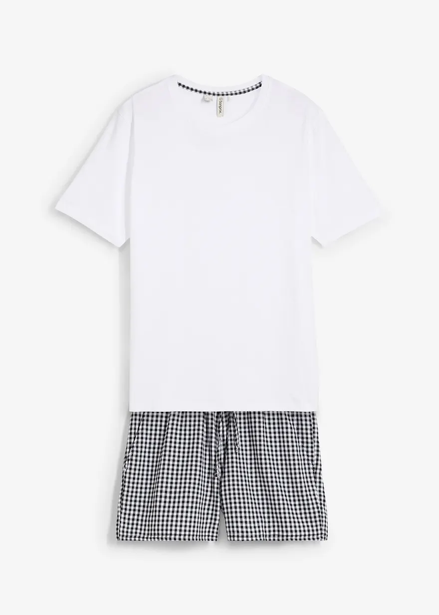 Gemütlicher Shorty aus reiner Baumwolle mit einem T-Shirt und kurzer Hose mit Eingrifftaschen.