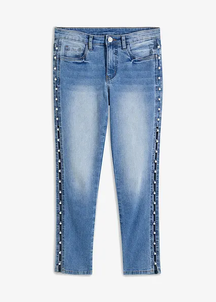 Skinny-Jeans mit Perlen-Details an der Seitennaht