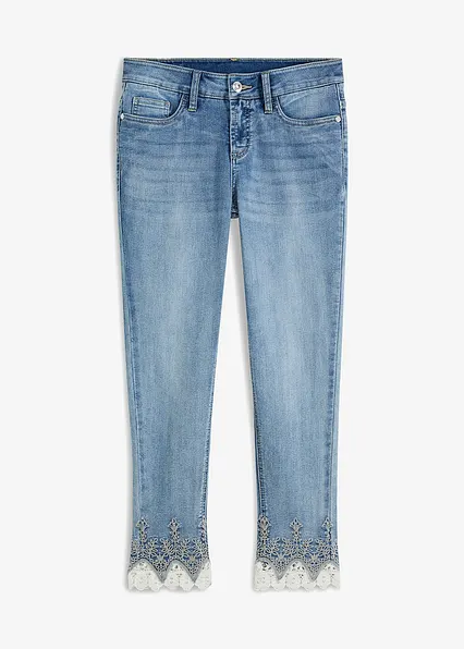 Skinny-Jeans mit Spitze in blau von vorne - bonprix