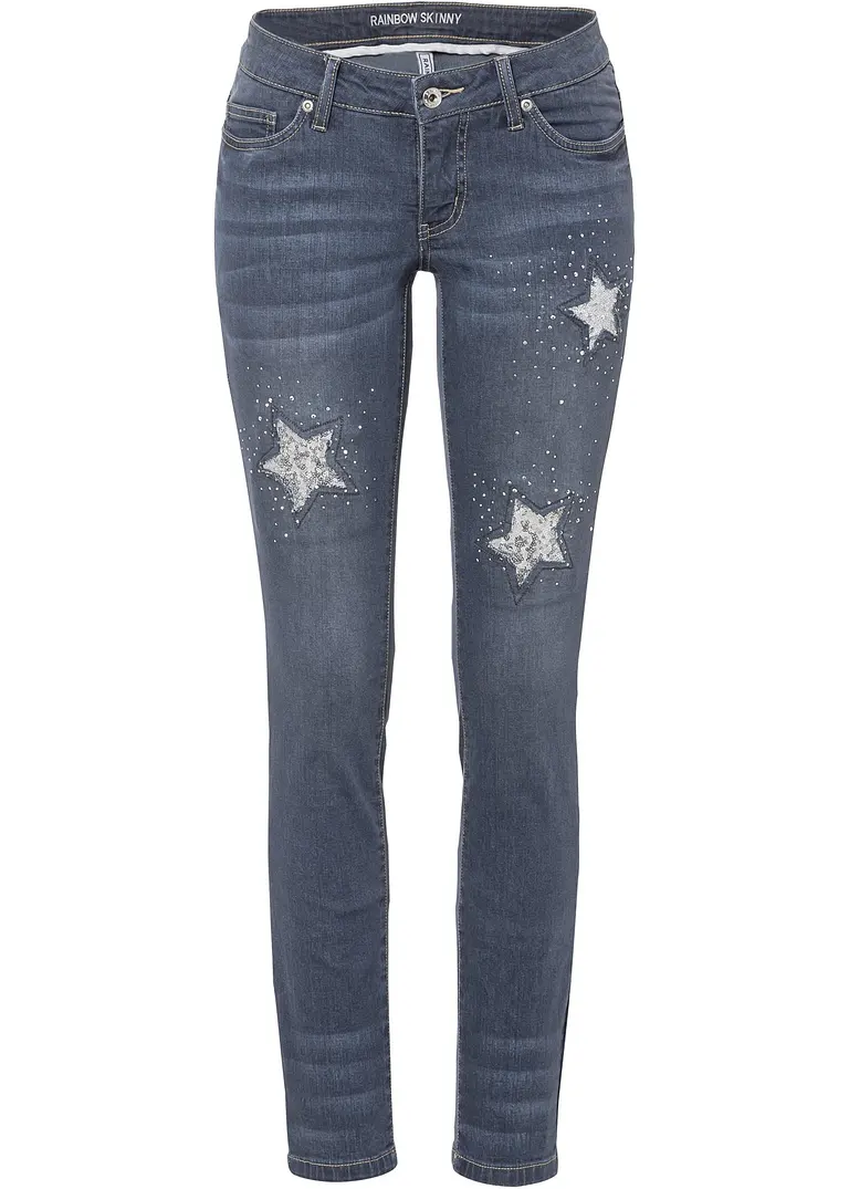 Trendy Skinny-Jeans mit Pailletten und Sternen-Details
