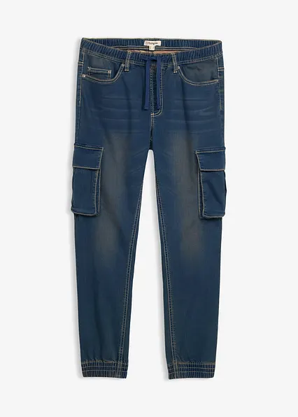 Cool gewaschene Schlupf-Sweat-Jeans mit Cargotaschen