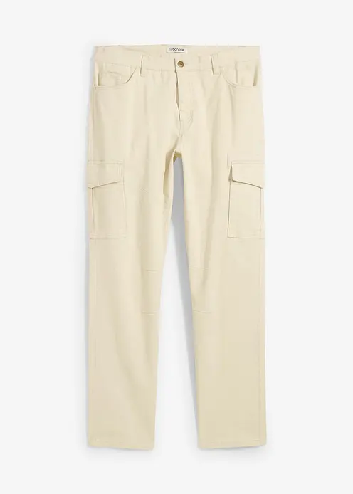 Slim Fit Stretch-Hose mit Cargotaschen, Straight in beige von vorne - bonprix