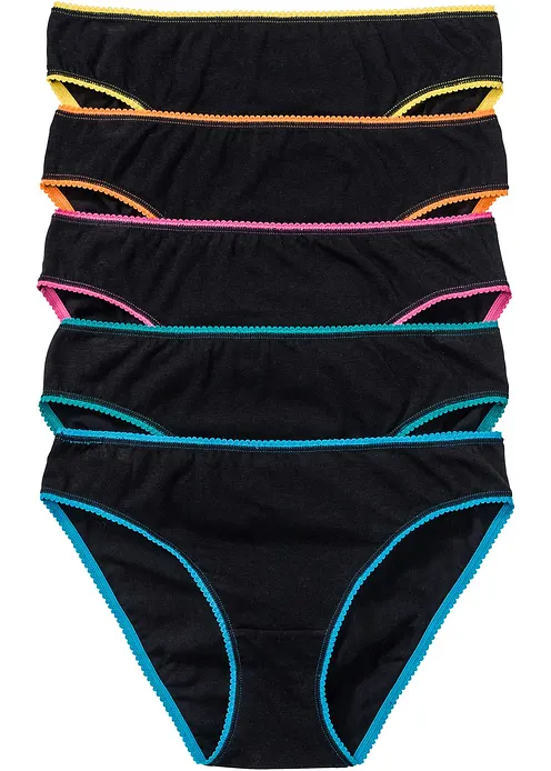 Dieser praktische Fünferpack enthält komfortable Slips aus der Kollektion von bpc für den täglichen Gebrauch. Die weiche Qualität schmiegt sich an den Körper und verleiht angenehmen Tragekomfort.Durch die kontrastfarbenen Gummieinsätze und die Zierkante entlang der Beinöffnungen sowie am Bündchen erhält der Slip eine tolle Optik und trägt sich sehr bequem. Der Zwickel besteht aus Baumwolle.