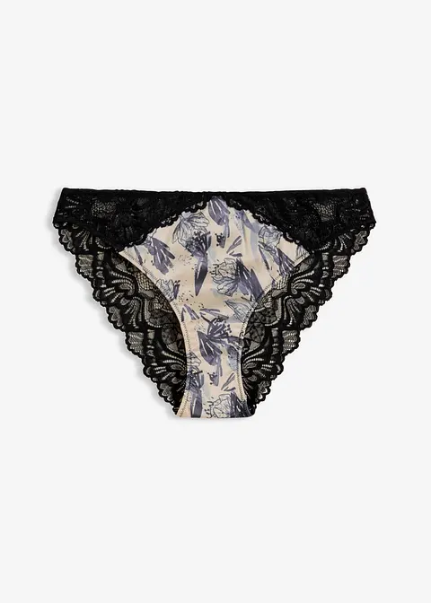 Minislip aus bedrucktem Satin mit toller Spitze.